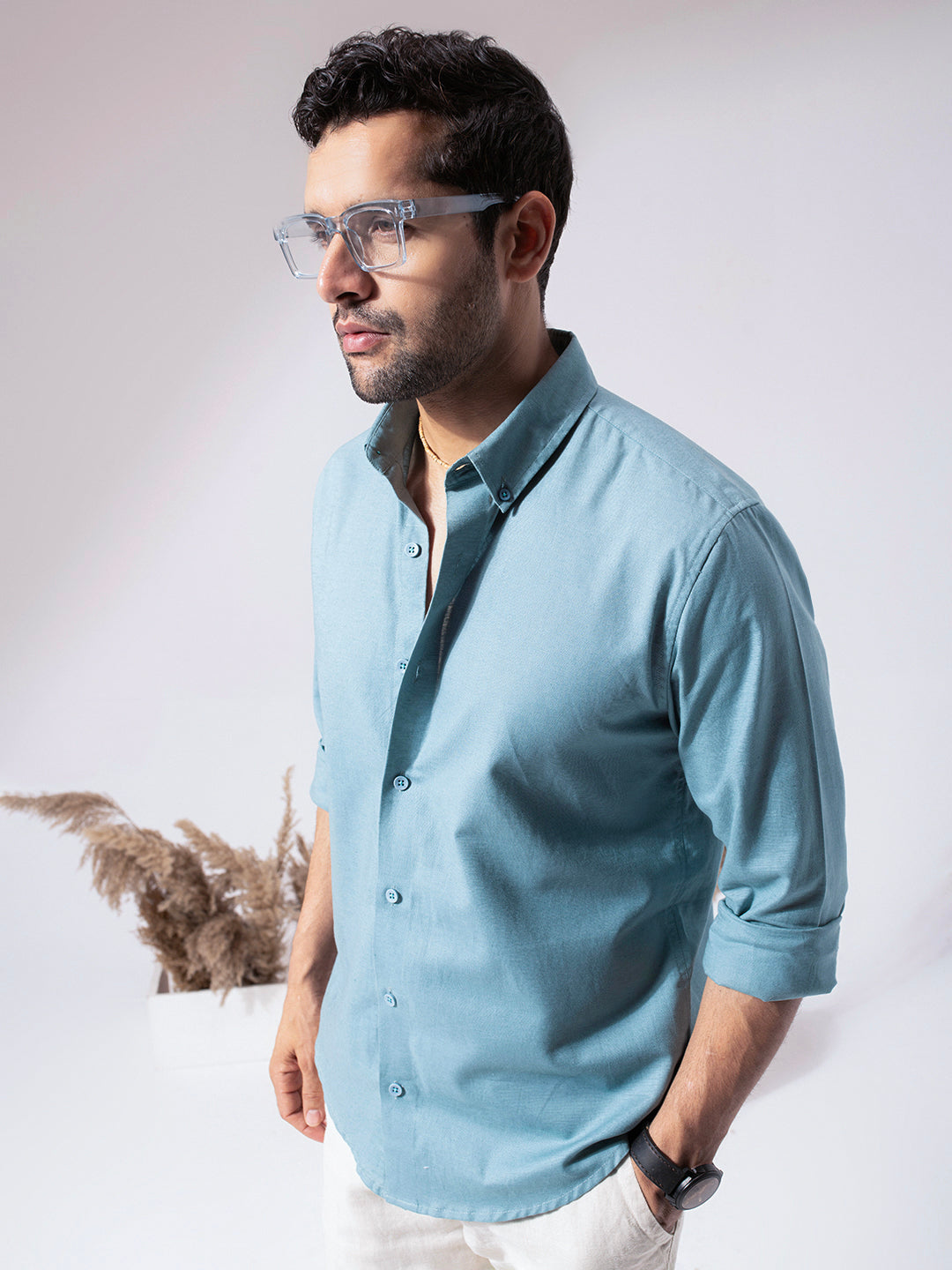 Sky Blue Solid Slim Fit Linen Cotton Shirt
