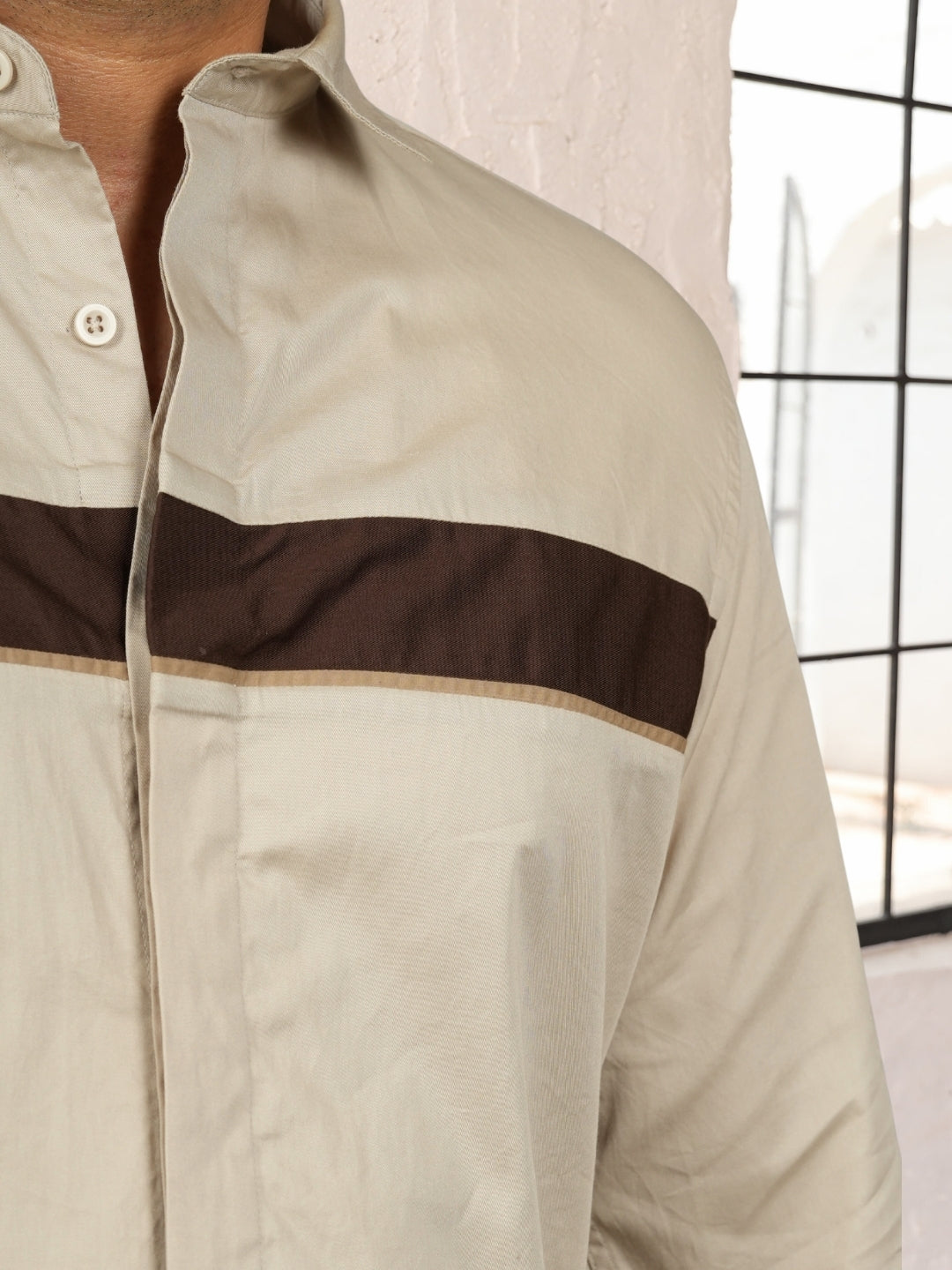 Featuring in our one-of-a-kind collection, this colour blocked shirt is surely going to be your new favourite! It beautifully merges Ivory, Brown & Dijon colors, producing a stylish yet elegant look.